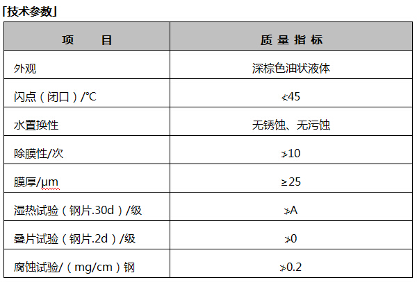 ● 防銹油應存放室內密封保存,避免混入水分或其它雜質防止日曬雨淋,存放于陰涼
